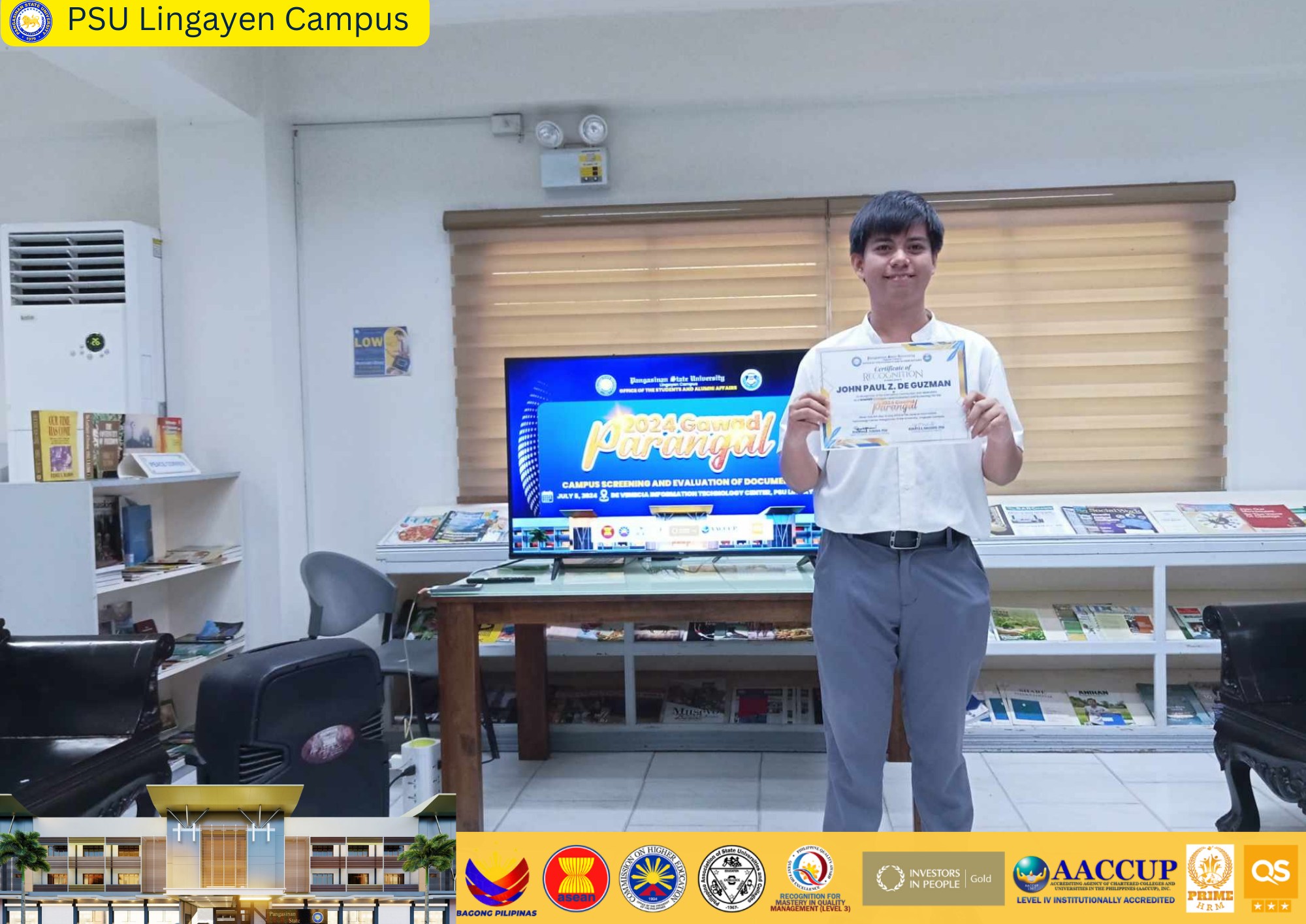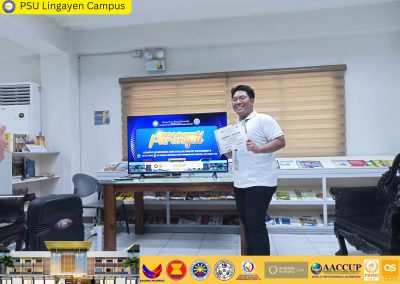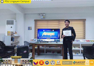 “This award is not just for me, but for everyone who has supported me along the way,” shared De Guzman during his acceptance speech. He expressed his gratitude to his family, friends, mentors, and the entire PSU Lingayen Campus for their unwavering support. He also emphasized his commitment to continuing his journey of learning, leadership, and service, aiming to inspire others to reach their full potential and contribute positively to society.